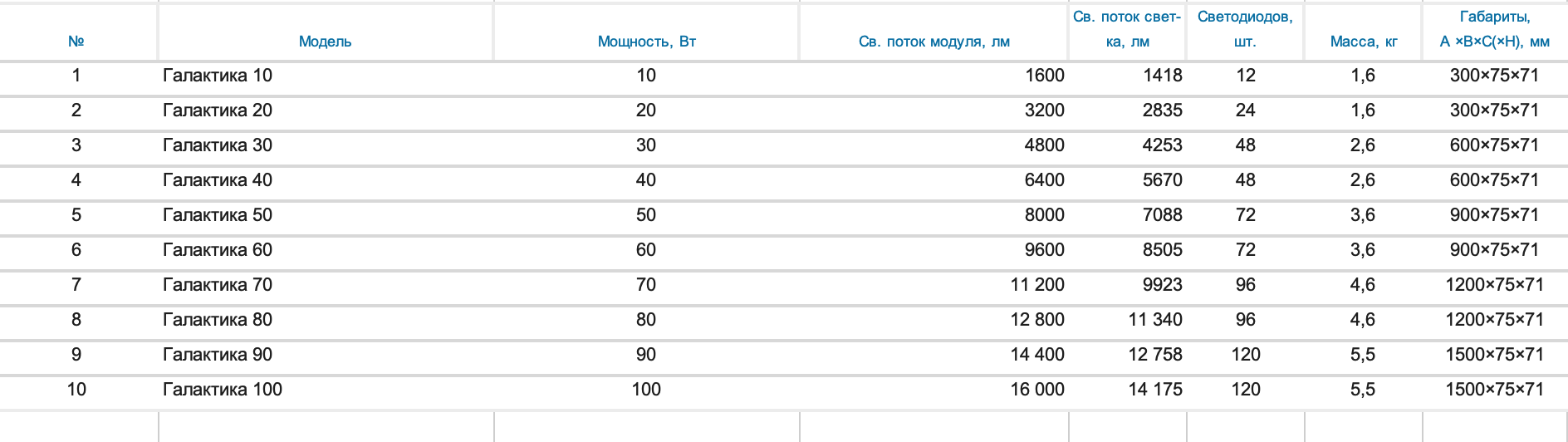 Потребляемая мощность 10–100 Вт Световой поток светильника 1 418–14 175 лм Напряжение питания сети 198-264/120-305 VAC Возможность низковольтного исполнения 12, 24, 36 VAC/VDC Частота питающей сети переменного тока 50–60 Гц Вид климатического исполнения УХЛ 1 Индекс цветопередачи Ra 70-90 Цветовая температура 3000K / 4000K / 5000K / 6000K Пульсация светового потока < 1% Кривая сила света Д Угол раскрытия луча 120° Производитель светодиодов Lumileds Возможность изготовления с БАП 3 часа Возможность диммирования по протоколам DALI / Switch-Control (аналог 0-10V и 1-10V) Срок службы 60 000 / 100 000 часов Рабочая температура -65°С .. +40°C / -60°С .. +80°C / +5°С .. +40°C Степень защиты от воздействия ОС IP 67