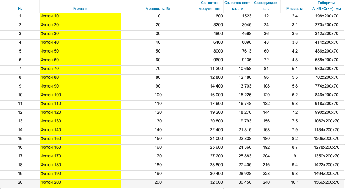 Потребляемая мощность 10–200 Вт Световой поток светильника 1 523–30 450 лм Напряжение питания сети 198-264/120-305 VAC Возможность низковольтного исполнения 12, 24, 36 VAC / VDC Частота питающей сети переменного тока 50–60 Гц Вид климатического исполнения У2 Индекс цветопередачи Ra 70-90 Цветовая температура 3000K / 4000K / 5000K / 6000K Пульсация светового потока < 1% Кривая сила света Д Кривая сила света с вторичной оптикой К, Г, Ш Угол раскрытия луча 120° Производитель светодиодов Lumileds Возможность изготовления с БАП 3 часа Возможность диммирования по протоколам DALI / Switch-Control (аналог 0-10V и 1-10V) Срок службы 60000 часов Рабочая температура -40°С .. +40°C / -60°С .. +80°C / +5°С .. +40°C Степень защиты от воздействия ОС IP 65 / IP 67