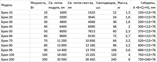 Световой поток светильника указанный в таблице модификаций доступен с индексом цветопередачи CRI70, цветовой температурой 5000К и прозрачным рассеивателем.
