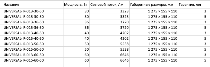 Светодиодный светильник промышленный серии UNIVERSAL-IR