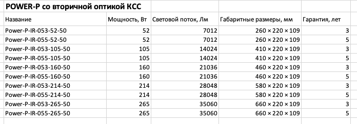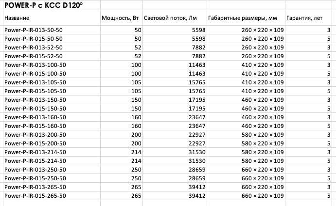 POWER-P-IR c КСС D120° и POWER-P-IR cо вторичной оптикой КСС